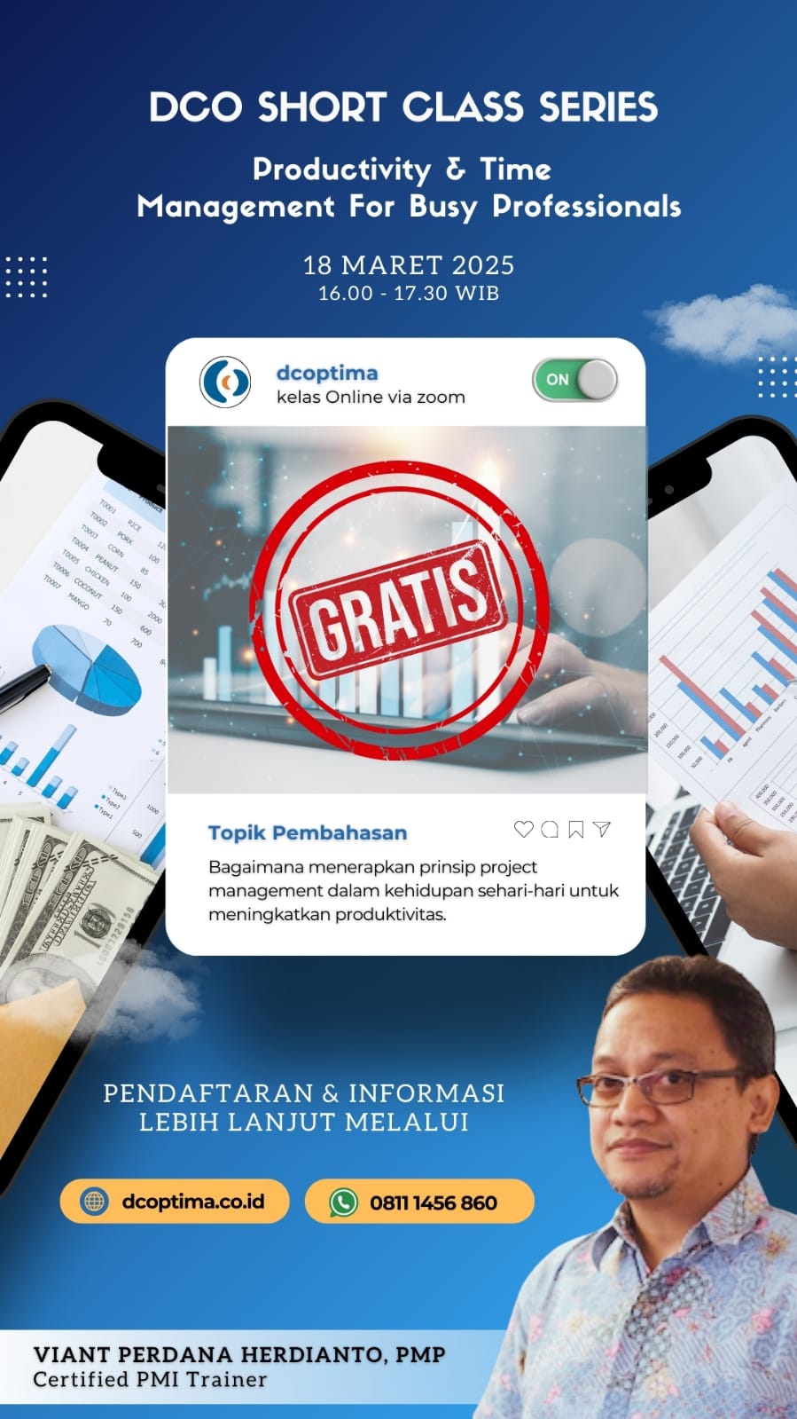 Distance Learning DKIDCO Short Class Series I Tema: Productivity & Time Management for Busy Profesionals Apa yang akan dipelajari: Bagaimana menerapkan prinsip project management dalam kehidupan sehari-hari